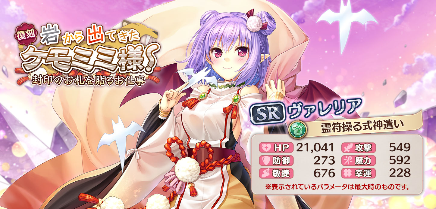 オンライン上の仲間達と協力して『マスターレイドボス』を倒して入手する『式神の護符』を集め、SRヴァレリア【霊符操る式神遣い】を手に入れましょう!