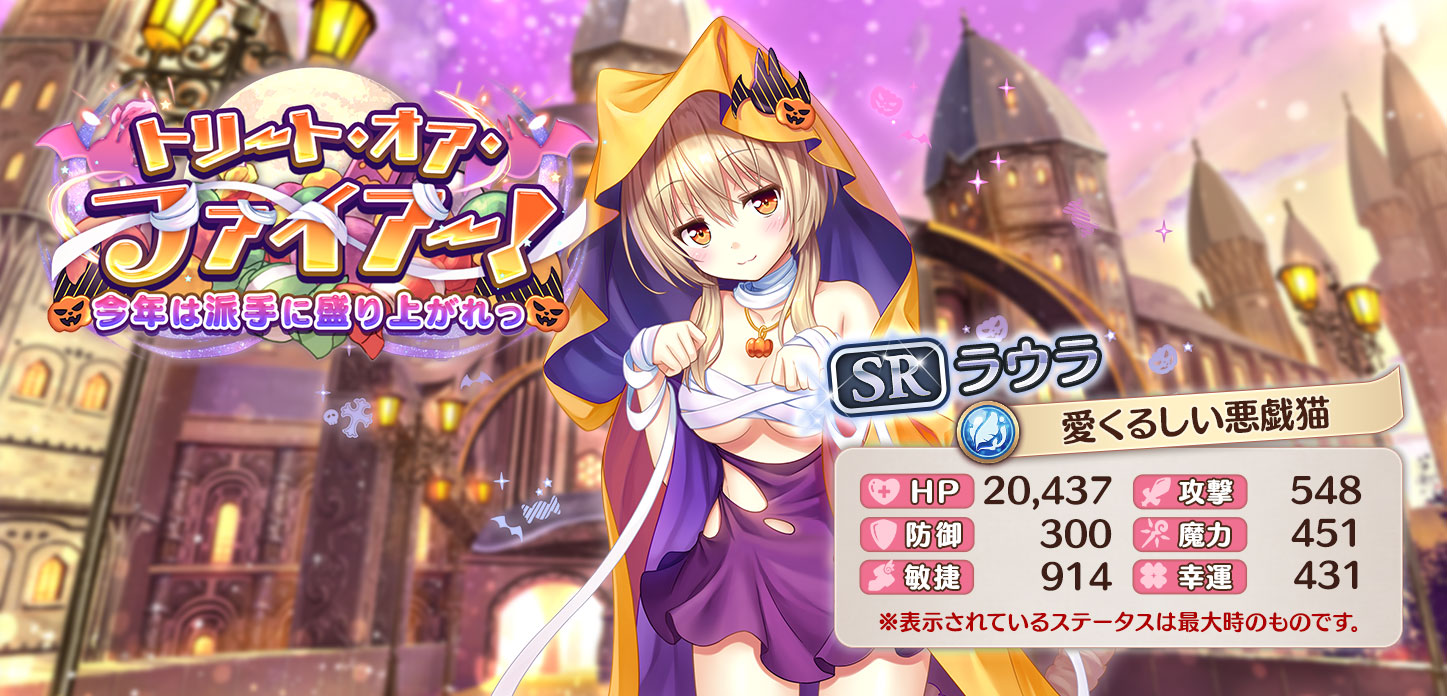 イベントクエストで入手できる『万聖の華火玉』を集め、SRラウラ【愛くるしい悪戯猫】を手に入れましょう!